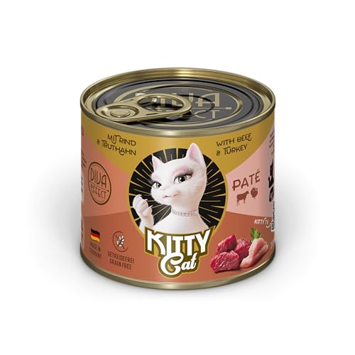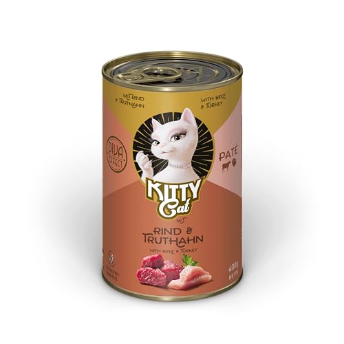 Kitty Cat Paté Bœuf et Dinde - Lot de 6 x 400 g - Nourriture Humide pour Chat - sans céréales - avec Taurine, Huile de Saumon et Moule aux orles Verts - Aliment Complet à Haute teneur en Viande -
