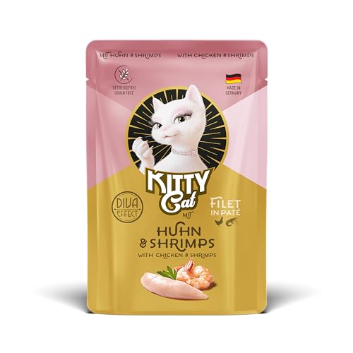 KITTY Cat Filet in Paté Poulet & Crevettes 6 x 85 g, Nourriture Humide Gourmet pour Chats, Nourriture Fine pour Chat avec Taurine, Huile de Saumon et Moule aux orles Vertes, sans céréales avec
