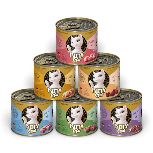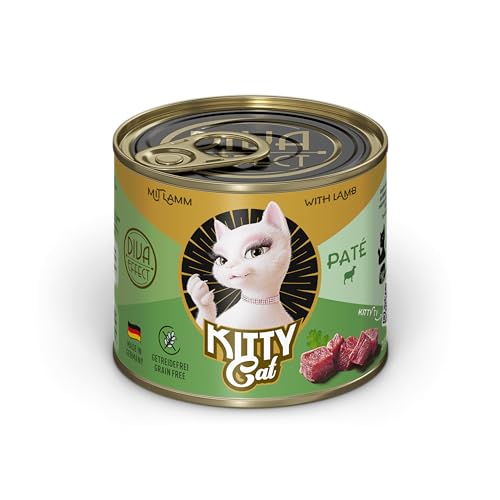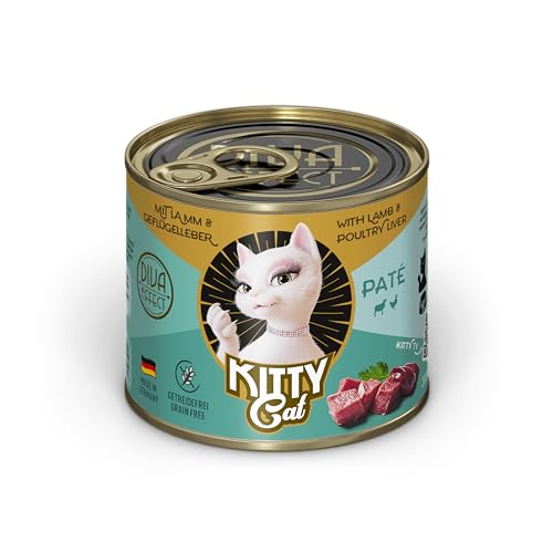 KITTY Cat Paté Agneau 6 x 200 g, Nourriture Humide pour Chat, sans céréales, avec Taurine, Huile de Saumon et Moule aux orles Vertes, Aliment Complet à Haute teneur en Viande, fabriqué en Allemagne