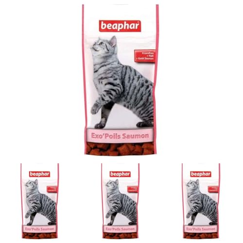 BEAPHAR – Friandises Exo’Poils goût Saumon, friandises au Malt pour Chat – Empêche la Formation de Boules de Poils – Favorise Le Bien-être intestinal – Sachet refermable avec Zip – 35 g (Lot de 4)