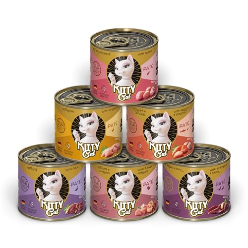 Kitty Cat Paté Poulet 6 x 400 g, Nourriture Humide pour Chat, sans céréales, avec Taurine, Huile de Saumon et Moule aux orles Vertes, Aliment Complet à Haute teneur en Viande, fabriqué en Allemagne