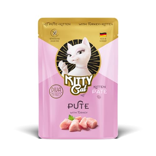 KITTY Cat Paté Dinde pour Chatons, 6 x 85 g, Nourriture Humide pour Jeunes Chats, Nourriture pour Chat sans céréales avec Taurine, Huile de Saumon et Moule aux orles Vertes, Aliment Complet à Haute