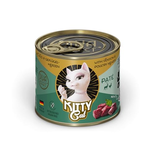 KITTY Cat Paté Wild & Coeurs de volaille - 6 x 200 g - Nourriture humide pour chat - Sans céréales - Avec taurine - Huile de saumon et moule aux orles vertes - Aliment complet à haute teneur en viande