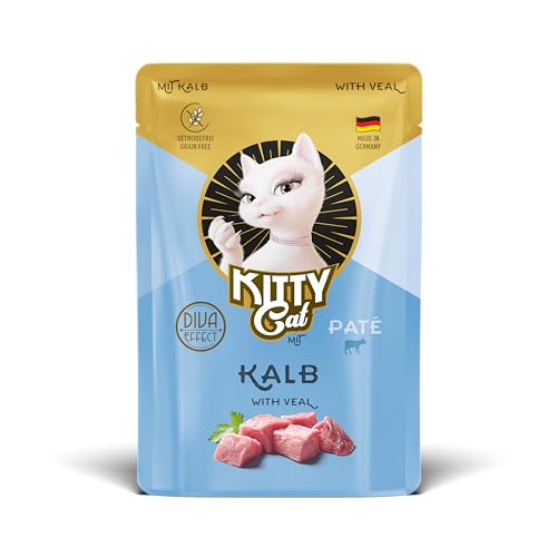 KITTY Cat Paté Veau - 6 x 85 g - Nourriture Humide pour Chat - sans céréales - avec Taurine, Huile de Saumon et Moule aux orles Vertes - Aliment Complet à Haute teneur en Viande - Fabriqué en