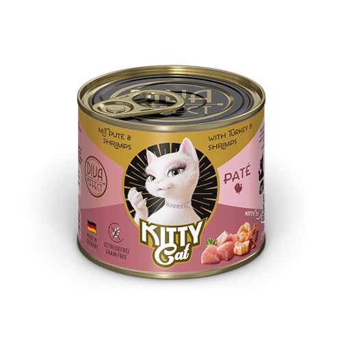 KITTY Cat Paté Dinde & crevettes 6 x 200 g, Nourriture Humide pour Chat, sans céréales, avec Taurine, Huile de Saumon et Moule aux orles Vertes, Aliment Complet à Haute teneur en Viande, fabriqué en