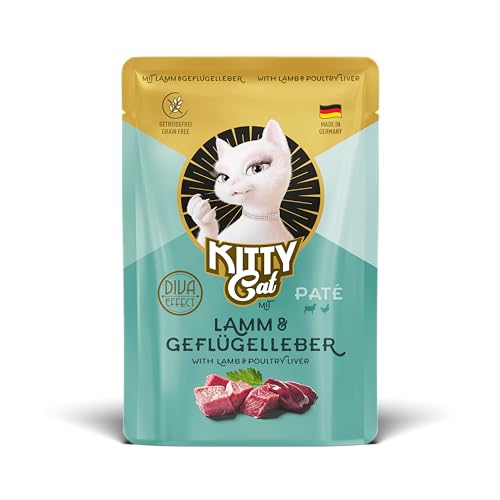 Kitty Cat Paté Agneau & Foie de volaille, 6 x 85 g, Nourriture Humide pour Chat, sans céréales, avec Taurine, Huile de Saumon et Moule aux orles Vertes, Aliment Complet à Haute teneur en Viande,