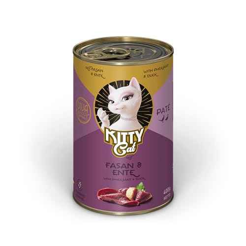 Kitty Cat Paté Faisan & Canard, 6 x 400 g, Nourriture Humide pour Chat, sans céréales, avec Taurine, Huile de Saumon et Moule aux orles Verts, Aliment Complet avec Haute teneur en Viande, fabriqué en