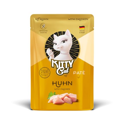 Kitty Cat Paté Poulet, 6 x 85 g, Nourriture Humide pour Chat, sans céréales, avec Taurine, Huile de Saumon et Moule aux orles Verts, Aliment Complet à Haute teneur en Viande, fabriqué en Allemagne