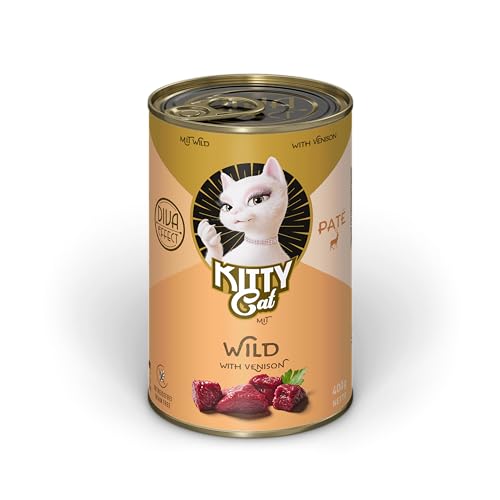 KITTY Cat Paté Wild Lot de 6 boîtes de 400 g de nourriture humide pour chat sans céréales avec taurine, huile de saumon et moule aux orles vertes, aliment complet à haute teneur en viande, fabriqué en