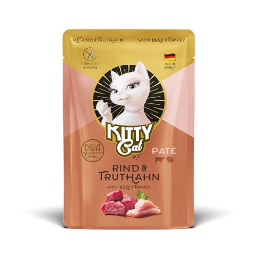 Kitty Cat Paté Boeuf & Dinde 6 x 85 g, Nourriture Humide pour Chat, sans céréales, avec Taurine, Huile de Saumon et Moule aux orles Vertes, Aliment Complet à Haute teneur en Viande, fabriqué en
