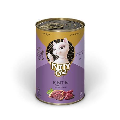 Kitty Cat Paté Canard, 6 x 400 g, Nourriture Humide pour Chat, sans céréales, avec Taurine, Huile de Saumon et Moule aux orles Vertes, Aliment Complet à Haute teneur en Viande, fabriqué en Allemagne