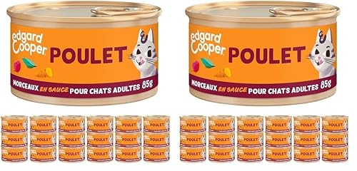 Edgard & Cooper Pâté pour Chat, Adulte, (Poulet, 85g x 18), Patée Morceaux en Sauce pour Chat, Viande fraîche et protéines de qualité, Pâté pour Chat stérilisé et Actif (Lot de 2)