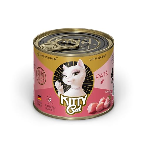 Kitty Cat Paté Lapin, 6 x 200 g, Nourriture Humide pour Chat, sans céréales, avec Taurine, Huile de Saumon et Moule aux orles Verts, Aliment Complet à Haute teneur en Viande, fabriqué en Allemagne