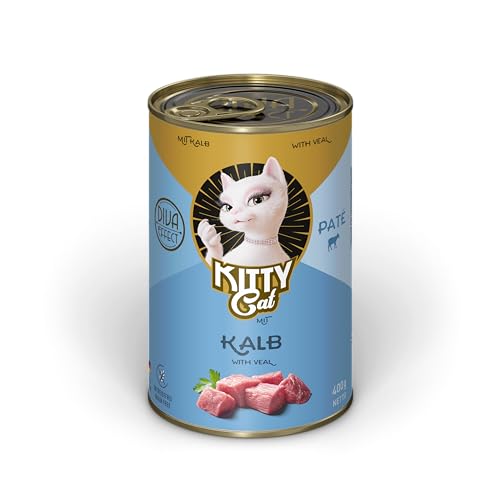 KITTY Cat Paté Veau - 6 x 400 g - Nourriture Humide pour Chat - sans céréales - avec Taurine - Huile de Saumon et Moule à lèvres Vertes - Aliment Complet à Haute teneur en Viande - Fabriqué en