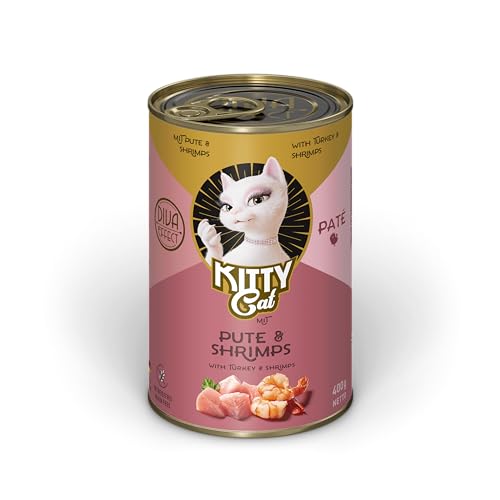 KITTY Cat Paté Dinde & crevettes, 6 x 400 g, Nourriture Humide pour Chat, sans céréales, avec Taurine, Huile de Saumon et Moule aux orles Vertes, Aliment Complet à Haute teneur en Viande, fabriqué en