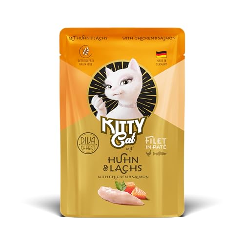 Kitty Cat Filet in Paté Poulet & Saumon 6 x 85 g, Nourriture Humide Gourmet pour Chats, Nourriture Fine pour Chat avec Taurine, Huile de Saumon et Moule aux orles Vertes, sans céréales avec Beaucoup