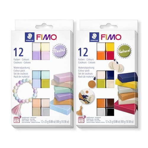 FIMO Kit de pâte à modeler durcissante au four - Pâte de bricolage souple pour débutants - Pâte à modeler efficace dans des couleurs pastel et naturelles - Blocs de modelage polyvalents pour bijoux et