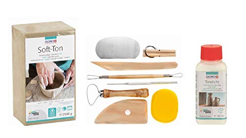 GLOREX 6 8075 299K – Kit créatif : argile souple 2500 g blanche, durcissante à l'air ou inflammable, 100 ml de pâte dense et un ensemble de 8 pièces avec outil de modelage résistant