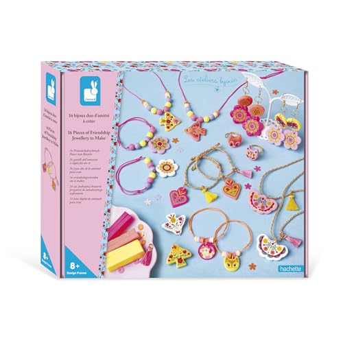 Janod - 16 Bijoux d'Amitié à Créer - Breloques à Créer en Autonomie en Pate Polymère - Kit de Loisirs Créatifs - Stimule la Créativité - Activité Manuelle pour Enfant - Dès 7 Ans et + - J09186