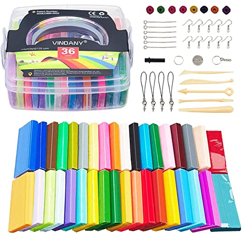 Vindany 36 Couleurs Pâte Polymère Pâte à Modeler Argile Bricolage Douce Non Toxique Cuire Clay Kit avec Outils et boîte de Rangement Cadeau de Noël Parfait pour Les Enfants