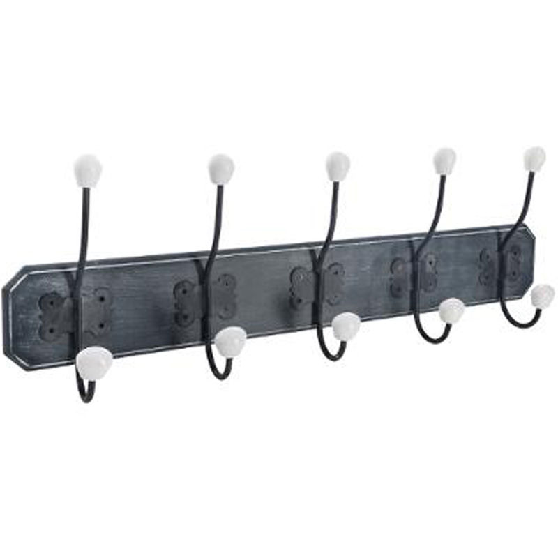 Pegane - Patère murale en bois de 5 double crochets coloris assorties - Dim : L.60 x l.8,5 x H.20 cm