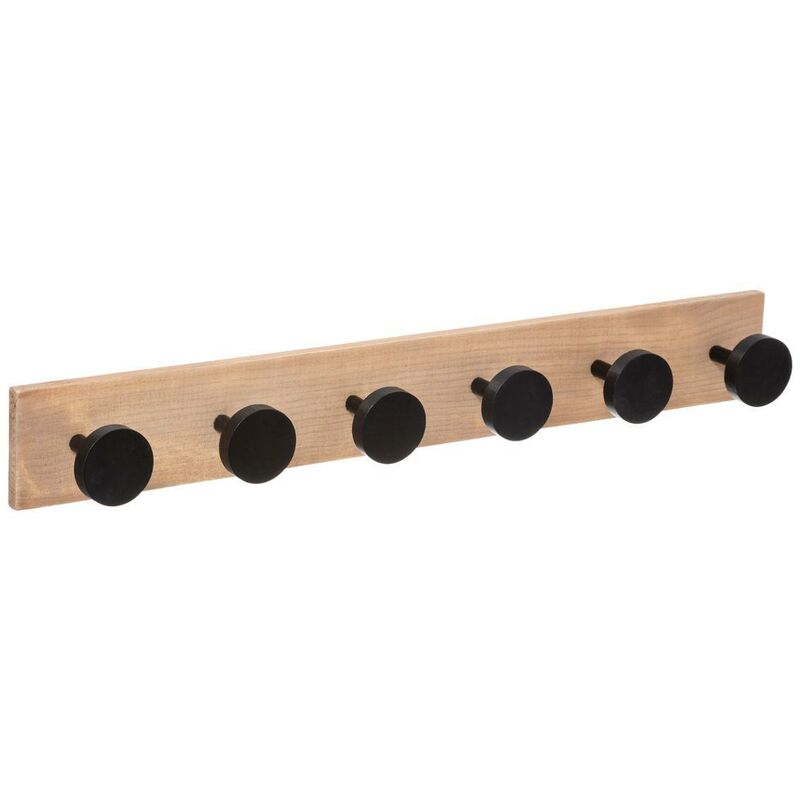 Atmosphera – Patère en bois 6 têtes noires – Composition MDF et pin – Dimensions L. 58 x P. 7 x H. 8 cm – Installation facile sur mur