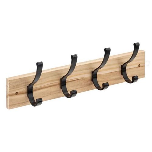 Patère Murale en Bois 4 Crochets 42cm Naturel