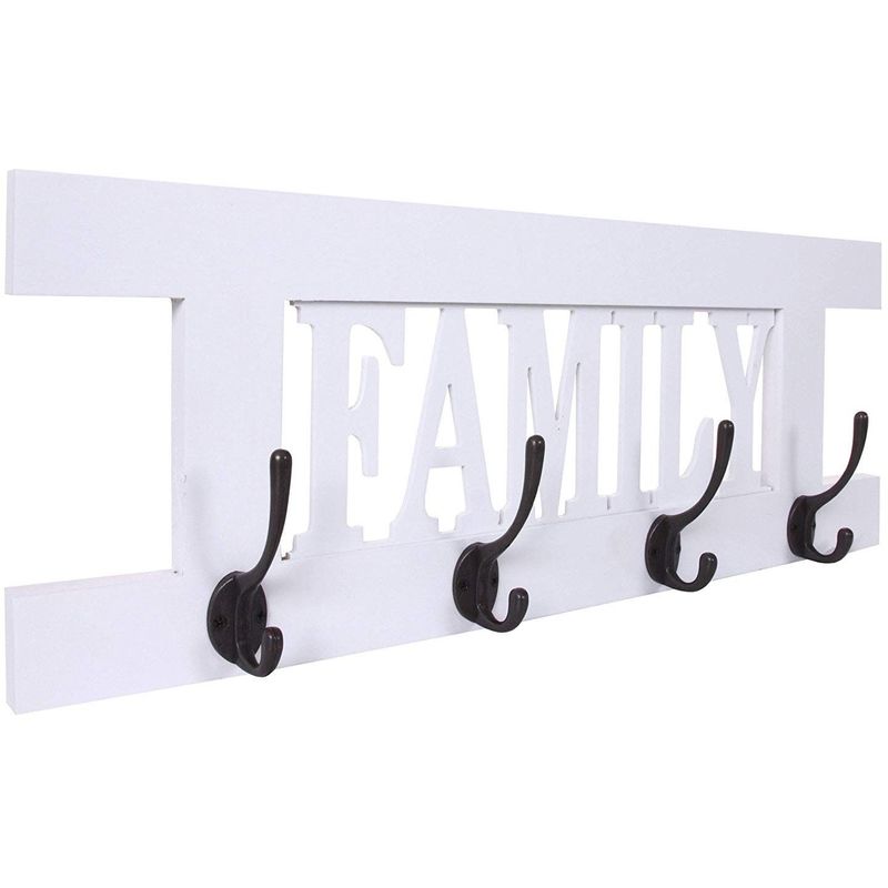 Décoshop26 - Porte-manteau mural patère en bois blanc avec 4 crochets 20,5x60x1,5 cm MED04064