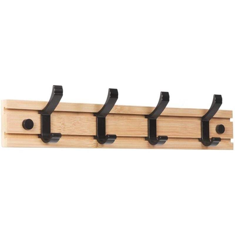 Porte-manteau mural, porte-manteau moderne patère en bois porte-manteau mural en bambou avec 4 crochets mobiles pour vestes, manteaux, écharpes, sacs