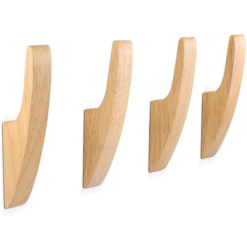 Green Mobility-Crochet en Bois 4 Pièces Crochet Porte Manteau en Bois Crochet en Bois Naturel Crochet Mural en Bois PatèRe en Bois Crochets Murals de