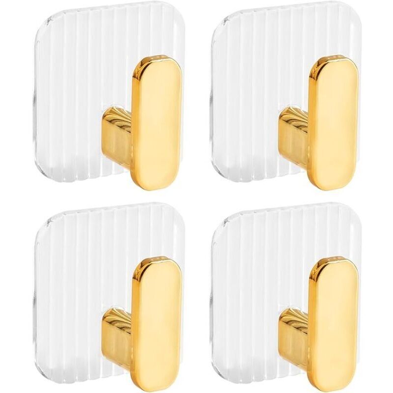 4 Pièces Doré Crochet Adhesif Mural,Patere Salle de Bain,Accroche Torchon Cuisine,Crochet Porte,Crochet Mural Adhesif pour Vêtements, Serviettes et