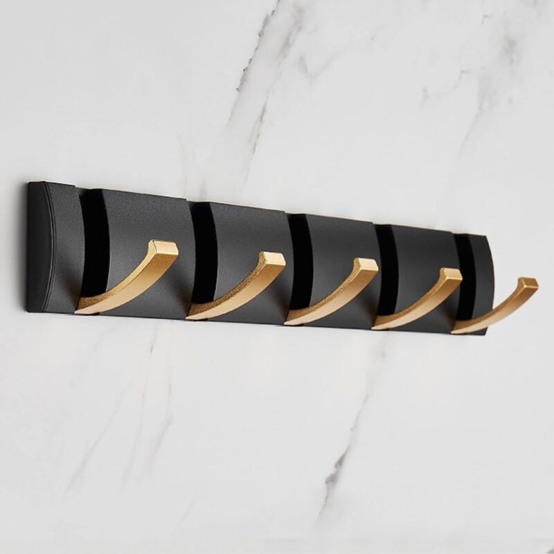 Alovez - Porte Manteau Mural Pliant avec 5 Crochets, Patere Murale peu Encombrant, Patere Porte Crochets Porte Serviettes Noir doré pour Salle de