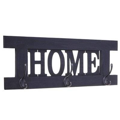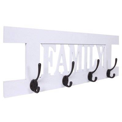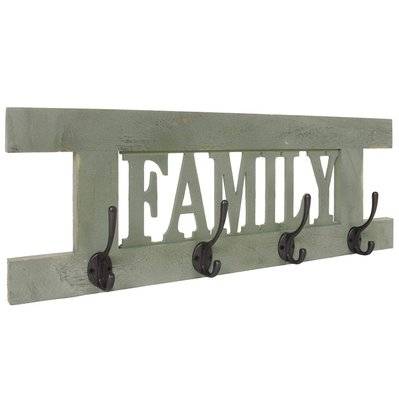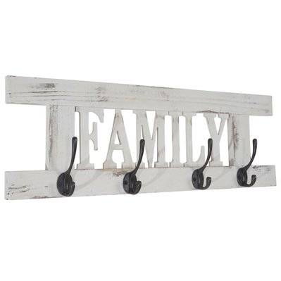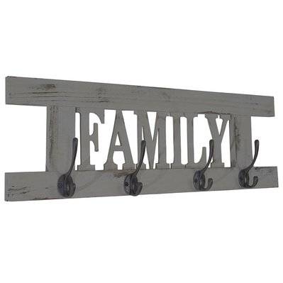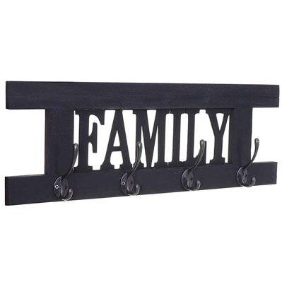 Decoshop26 Porte-manteau mural patère en bois gris foncé vintage family 20,5x60x1,5 cm MED04065