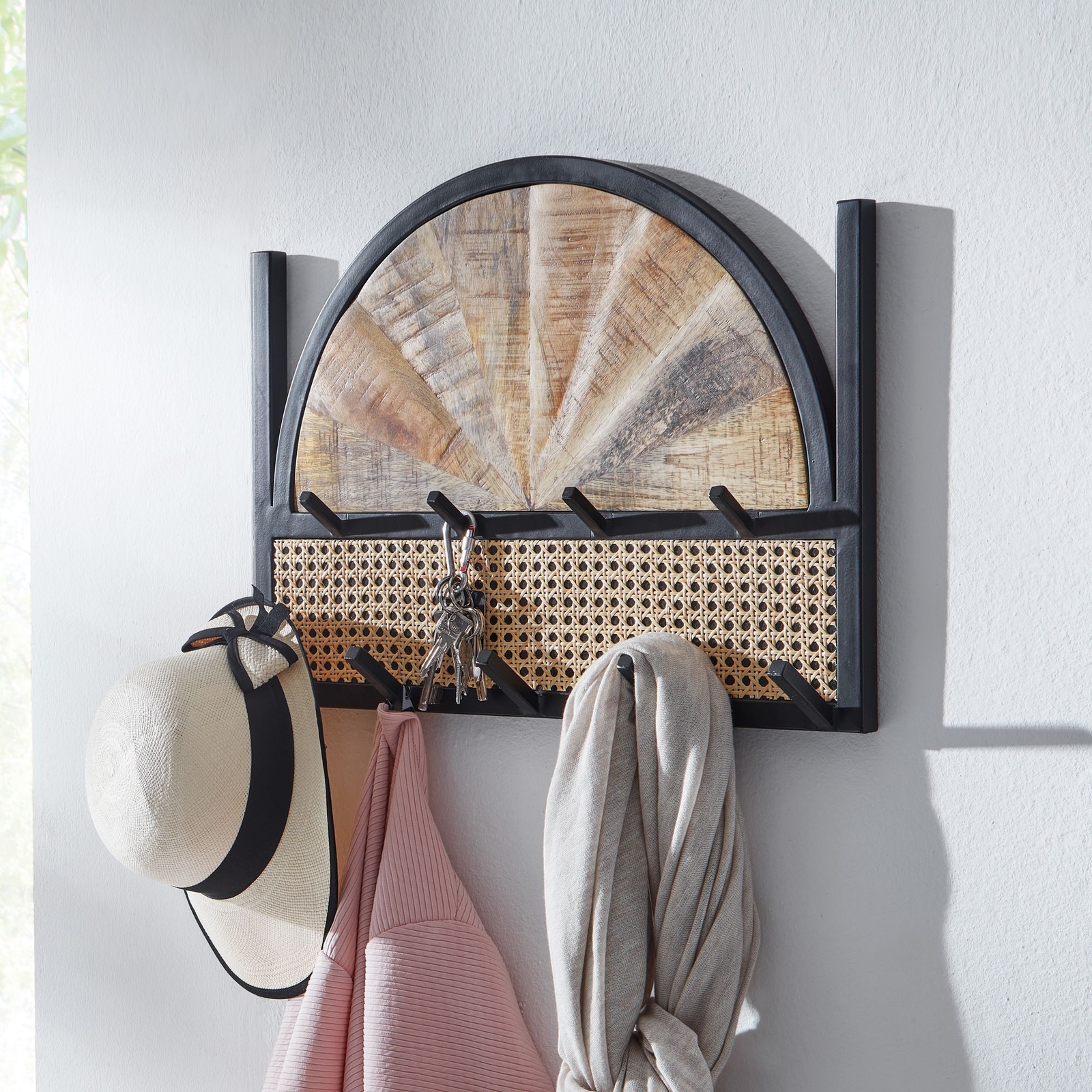 FineBuy Porte Manteau Mural 5 Crochets Bois Massif Metal 71 cm Patere Murale