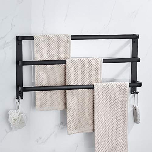 YTXWZ Porte Serviette Salle de Bain Mural 50 cm, Serviettes en Noir Mat étagère Serviette Salle de Bain Porte Serviettes Mural avec Patere Porte pour Le Rangement des Serviettes de Bain50cm 20in