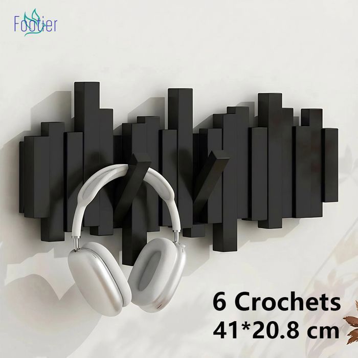Patere Porte Manteau Porte Manteau Mural Bois 6 Crochets Rabattables pour Entrée Chambre Salle de Bain Cuisine Noir