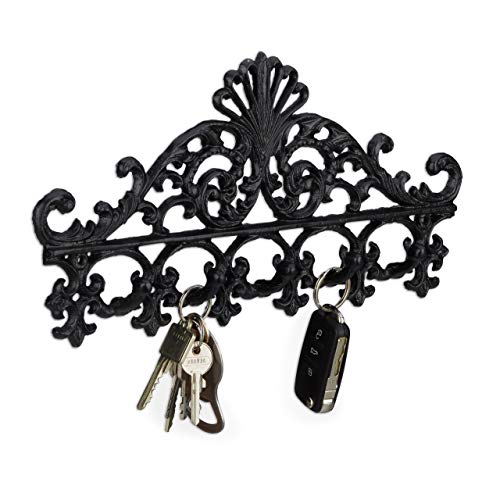 Relaxdays Patère porte-manteau en fonte avec 5 crochets style baroque antique ancien HxlxP: 17 x 35 x 3,5 cm noir