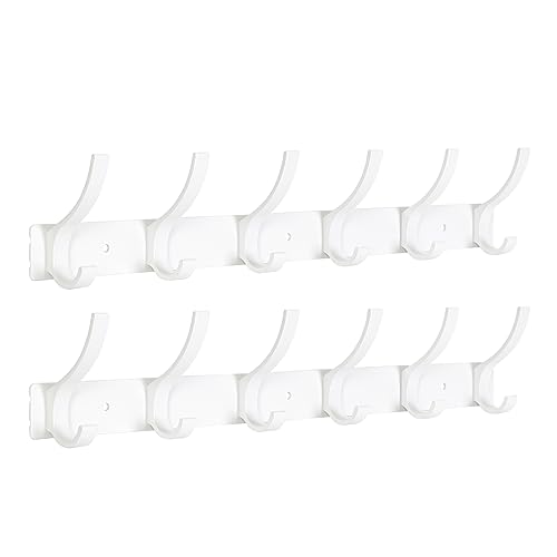 Optish 2 Pièces Porte Manteau Mural avec 12 Crochets, Métal Robuste Patere Porte Manteau Blanc pour une Entrée, Chambre pour Accrocher Manteaux, Vestes, Chapeaux et Serviettes - 40CM