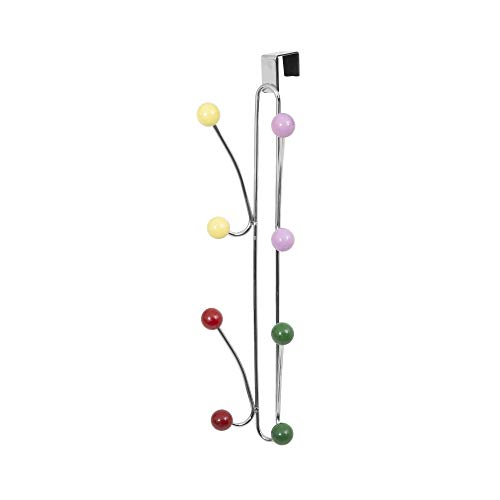 Compactor Patère de Porte Berlingot, 8 Crochets en Bois Multicouleurs, Acier Chromé, 11.7 x 6 x H. 43.7 cm, RAN6011