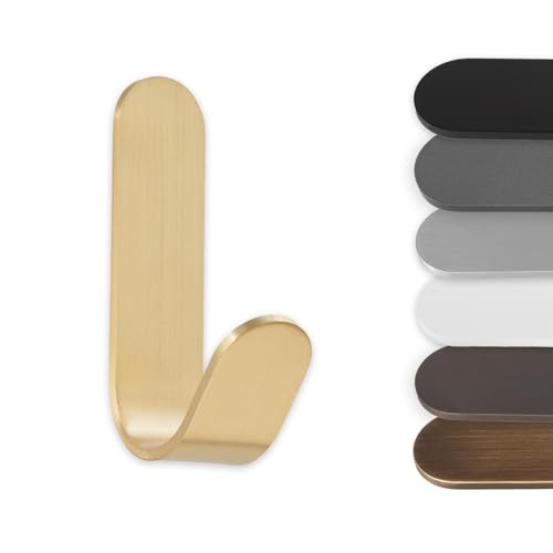 Amig - Crochet mural adhésif pour serviette Mod. Ea-5 | Patère de salle de bain sans vis | 100 x 65 x 45 mm | Acier inoxydable | Or mat