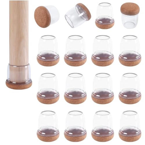 AWBEOT 16 Pcs Protection Pied de Chaise, Patin pour Chaises avec Feutre, Protecteurs de Sol en TPE Transparent, Protections Tampon de Sol, Convient aux Meubles avec un Diamètre de Pied de 14-19mm, [S]