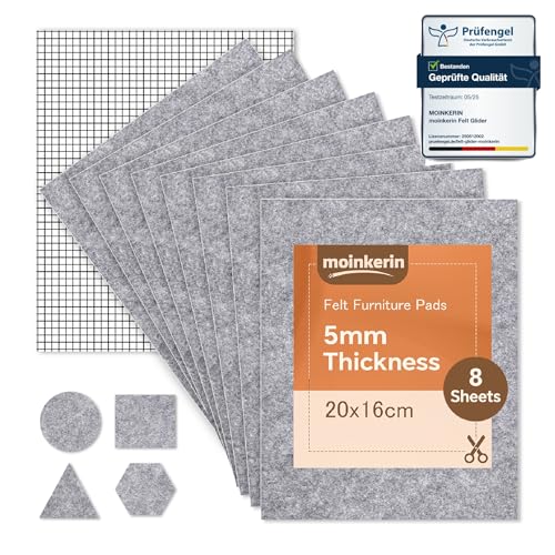 moinkerin 8 Pièces Patin Feutre Autocollant 16x20cm 5mm Patin Chaise Feutre pour Chaises,Parquet Réduction du Bruit & Protection Anti-rayures Patins en Feutre Auto-Adhésifs Découpez toute forme (Gris)