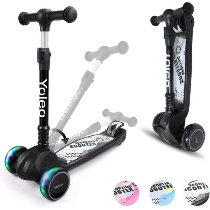 Yoleo Trottinette 3 Roues LED pour Enfants Patinette Réglable avec Roues LumineuxGuidon AmovibleCadeau pour enfant 3-12 ans