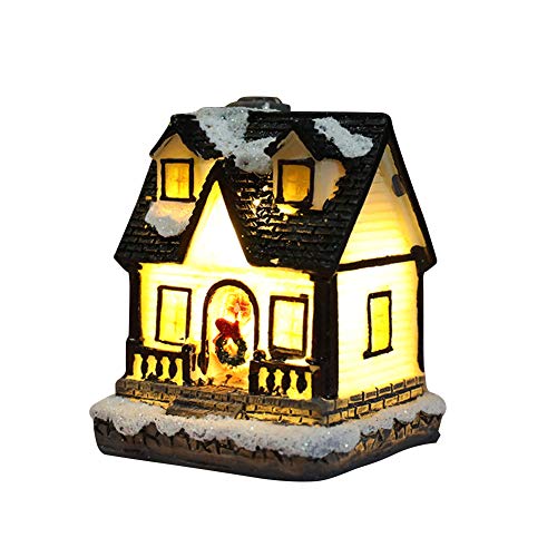 Uposao Décorations De Noël, Maison en Résine LED Lumière Noël Vacances Village Ville De Noel Miniature Maison De Noel Décorations De Scène De Bâtiments D'ornement DIY Artisanat Miniature Décor Maison