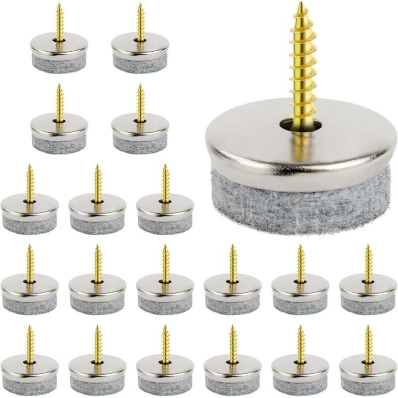 32 Pièces Patins pour Meubles 22mm avec Clous Antirouille Patin Chaise à Clous en Téflon PTFE pour Déplacer Meubles Lourds sans Effort Protection Sols