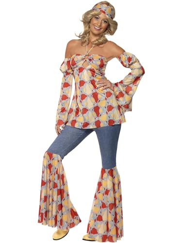 Smiffys Costume hippy vintage des années 70, avec haut dos nu, manches, pantalon patte d'éléphant et bandeau Halloween