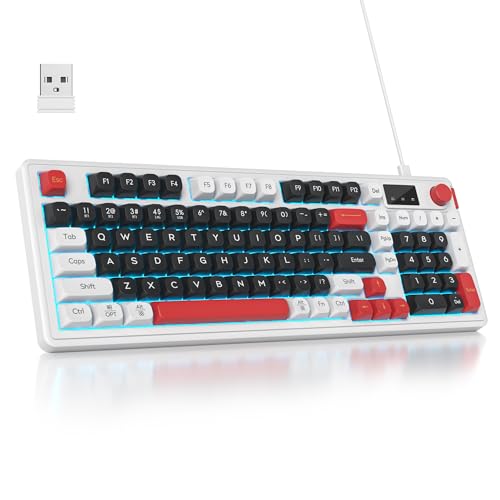 SbocKeeb Clavier sans Fil, 96% Ordinateur Clavier Silencieux Gaming à Membrane, Disposition Américaine QWERTY, Bluetooth/2,4 G/USB RGB Crémeux Claviers avec Pavé Numérique