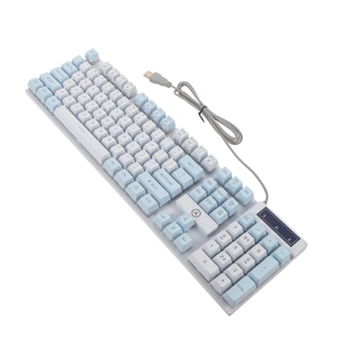 Lurrose Clavier Mécanique Filaire Blanc et Bleu Rétroéclairé RGB Pavé Numérique Gaming Connexion USB-C Touches Tactiles Résistantes Éclairage Multicolore pour PC et Ordinateur Portable
