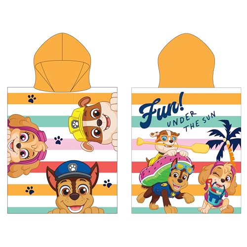 Poncho Officiel Paw Patrol à Capuche | Super Doux au Toucher, Motif ensoleillé avec Chase, Rubble et Skye | Peignoir de Bain Parfait pour la Maison, Le Bain et la Plage, 55 x 50 cm