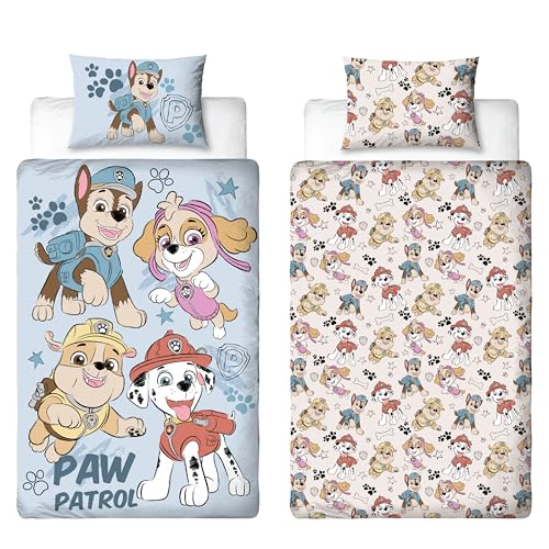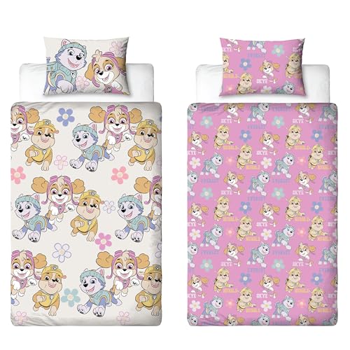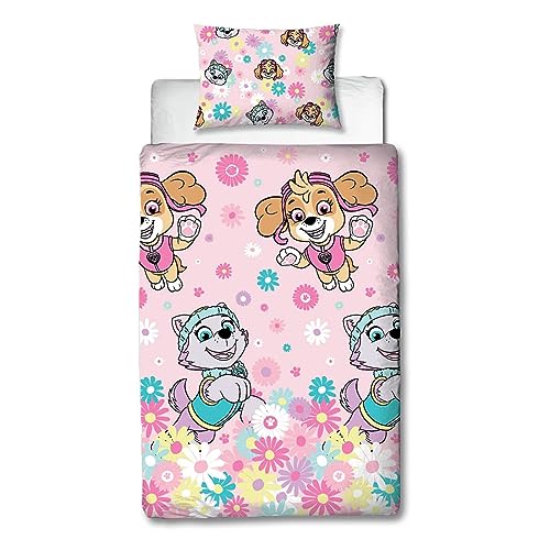 Character World Paw Patrol Parure de lit Simple pour Enfant avec Housse de Couette réversible Motif Fleurs 2 côtés avec taie d'oreiller Assortie